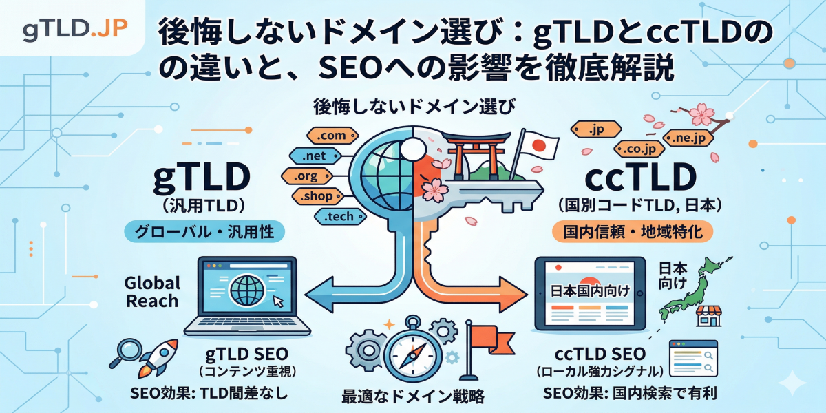 | 比較軸 | gTLD(例:.com) | ccTLD(例:.jp) |